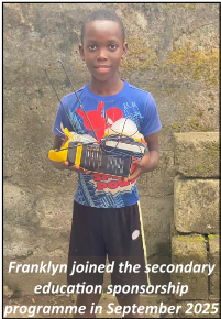 Sometimes we have met other needs so that education is not impaired. For example, we have paid for mosquito nets to help our young people avoid getting malaria. Sometimes we provide our students with a small table and chair so that they can study at home. Typically, it costs £400 to sponsor a child's secondary education for one year.